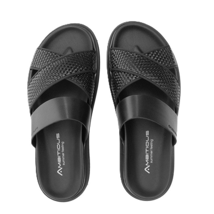 Мъжки черни кожени чехли AMBITIOUS
