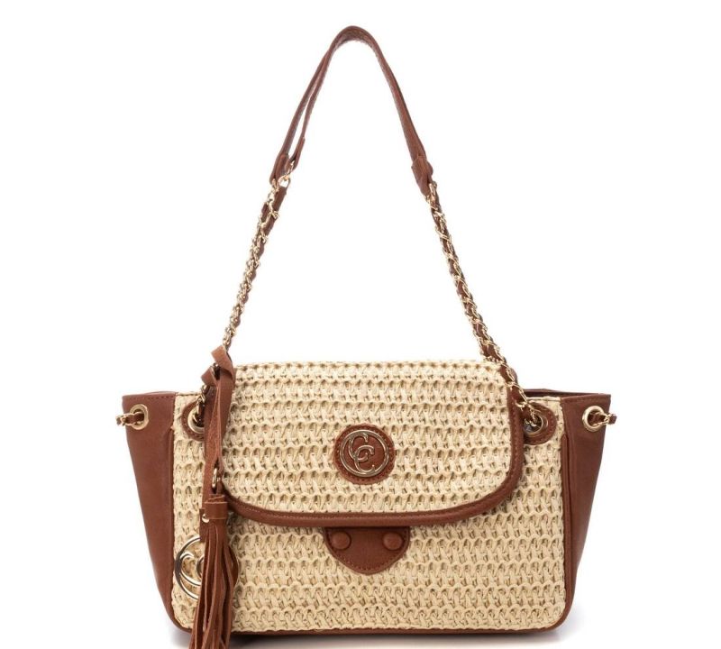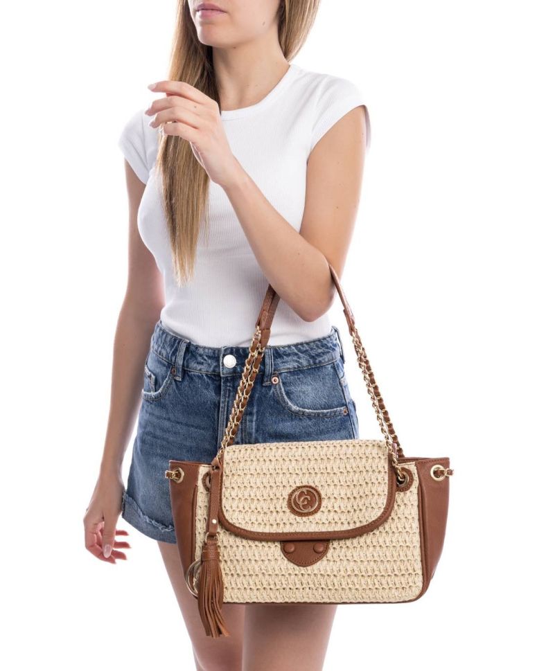 Дамска бежова чанта рафия CARMELA