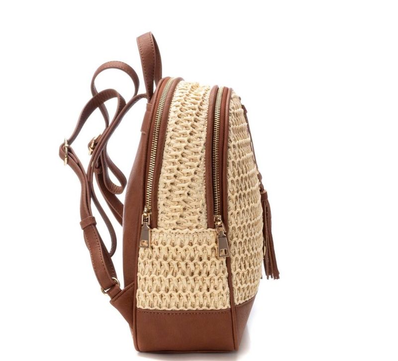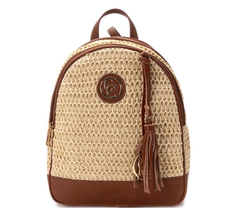 Начало Чанти Раници Дамска бежова раница рафия CARMELA