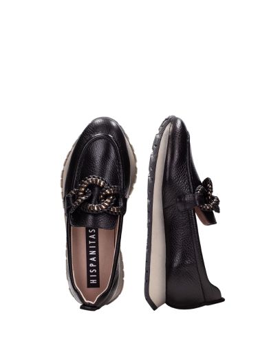 Дамски черни кожени мокасини HISPANITAS