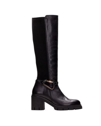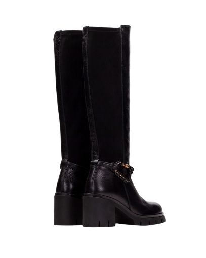 Дамски черни кожени ботуши HISPANITAS
