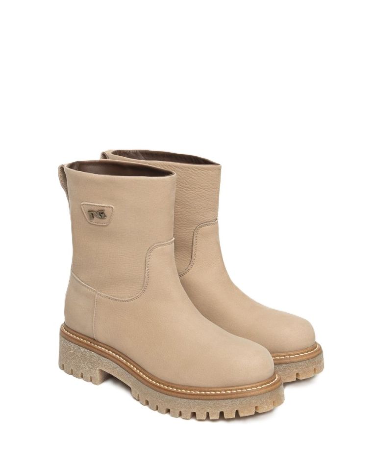 Дамски бежови кожени боти NeroGiardini