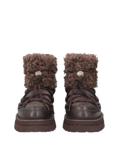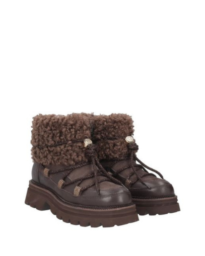 Тези тъмнокафяви боти с връзки са идеалният начин да се справите със студеното време, без да правите компромис с комфорта. Изработени от смес от гладка кожа и велур, те имат мека подплата с ефект на плюшено мече за уютно усещане. Имат странично закопчаване с цип и декоративни връзки, което гарантира бързо и лесно обуване.