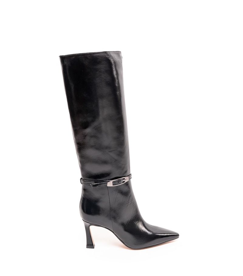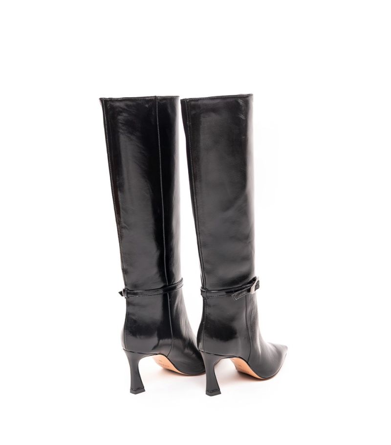 Дамски черни кожени ботуши лак BIANCA DI