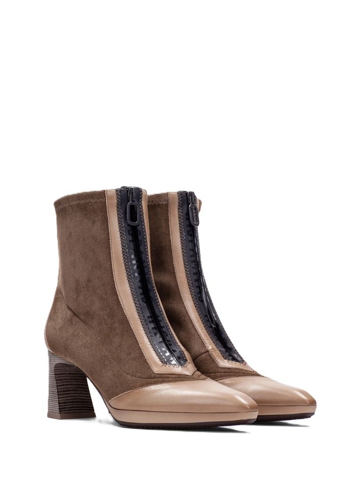 - Модел от естествена кожа, комбинирана с еластична материя