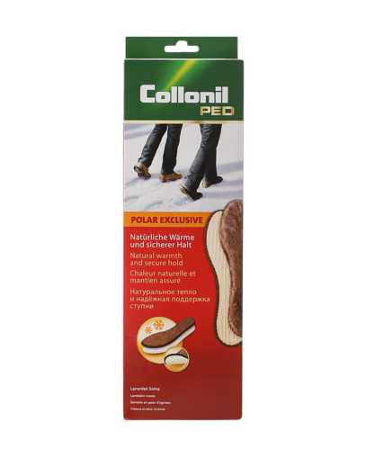 Зимната стелка Polar Exclusive е изработена от агнешка кожа. Тя затопля краката при много ниски температури и осигурява максимален комфорт благодарение на меката си вълнена подплата. Противоплъзгащото покритие осигурява здраво сцепление с обувките и ботушите.