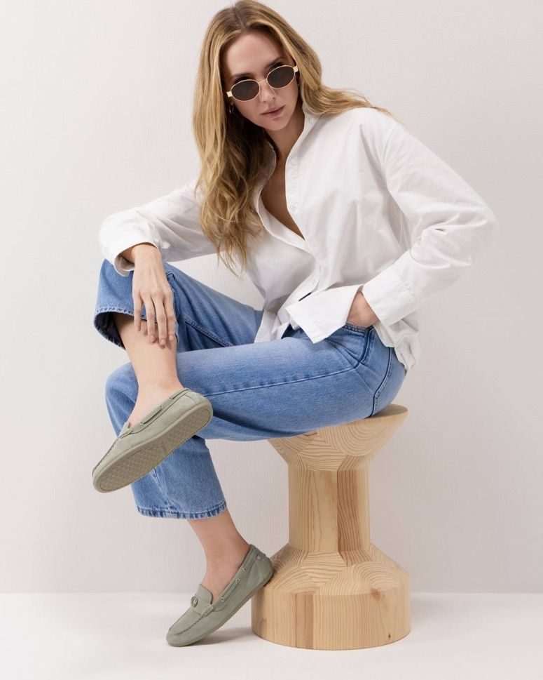 Дамски зелени велурени мокасини CARMELA