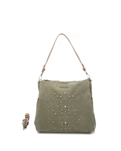 - Дамска чанта, изработена в комбинация от велур и шагренирана кожа