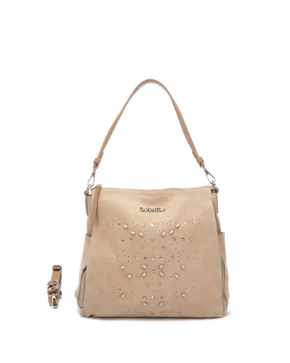 - Дамска чанта, изработена в комбинация от велур и шагренирана кожа