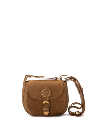 - Лого на марката, изработено от кожа и декорирано със златисти детайли
