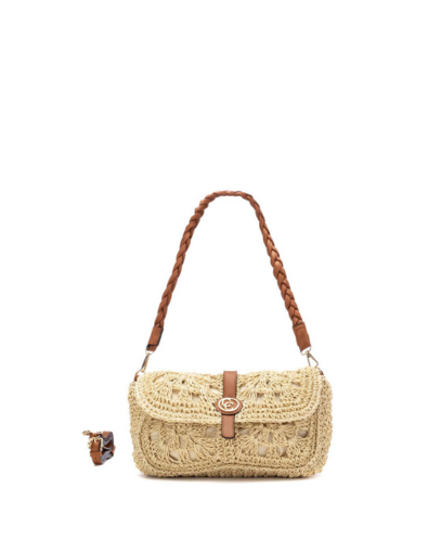 • Дамска плетена чанта от материал с ефект на рафия
