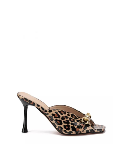• Дамски чехли на тънък ток в леопардов принт