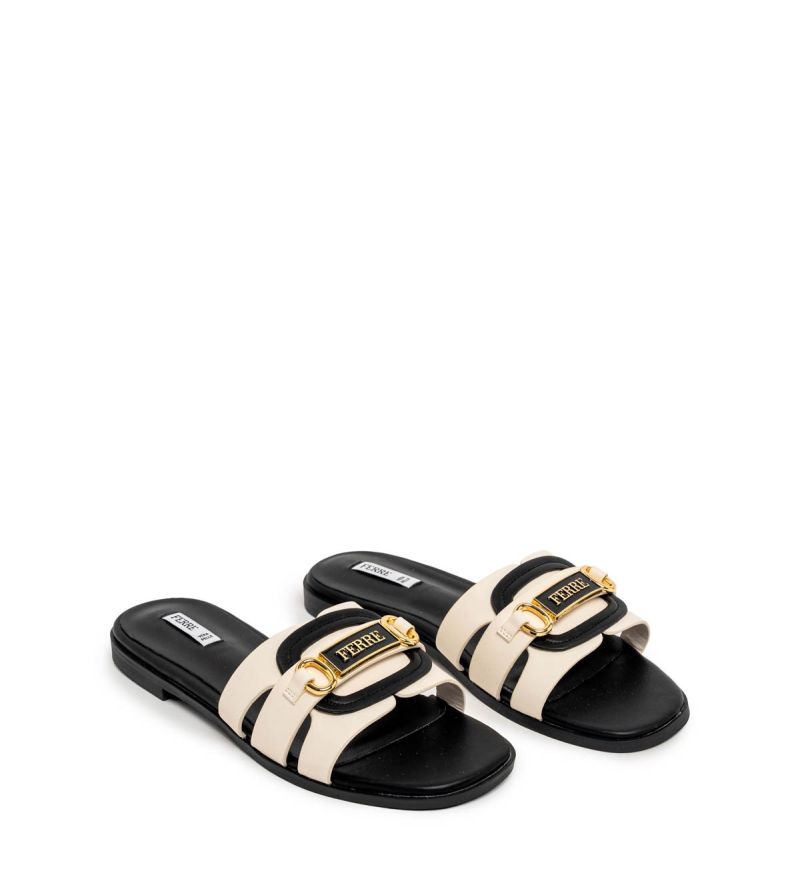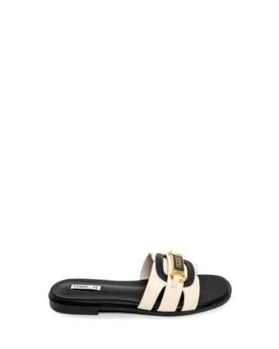Дамски черни кожени чехли FERRE