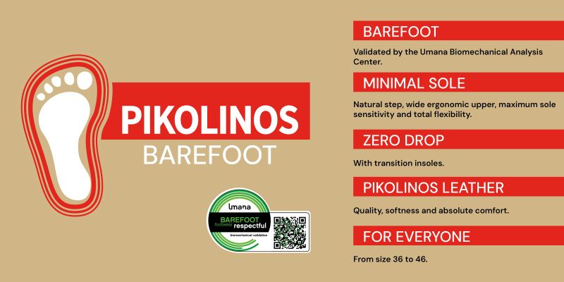 Тези унисекс боси обувки са създадени за потребители, търсещи свободна и лека стъпка, без да жертват топлината, мекотата и комфорта, които кожата осигурява. Първият модел Barefoot от марката PIKOLINOS, валидиран от Центъра за биомеханика UMANA, е върховният израз на най-важното: вашите крака. Той се отличава с ултралека подметка от естествен каучук и форма, която се адаптира към естествената форма на вашето стъпало. Широка, без наклон, позволява свободно движение на пръстите на краката ви. Това е най-гъвкавият дизайн в колекцията, напълно огъващ се и без издатини на петата за подобрена мекота и комфорт с всяка стъпка. Ако смятате, че преминаването към този тип обувки е предизвикателство, има допълнителна адаптивна стелка, която да ви помогне постепенно да се приспособите към този стил, която можете да премахнете, когато сте готови да прегърнете абсолютния минимализъм.