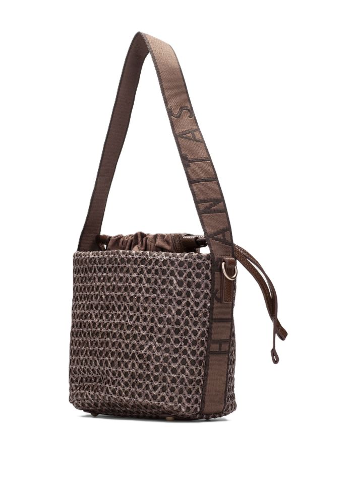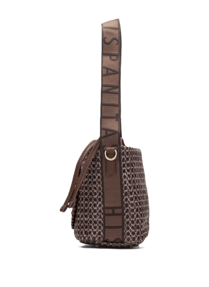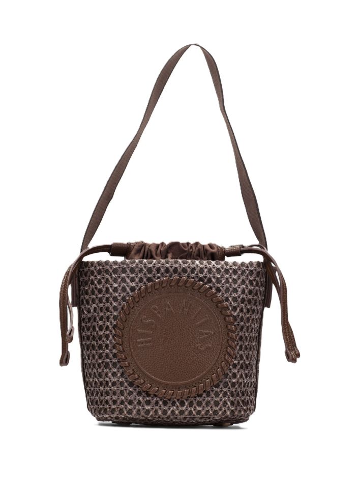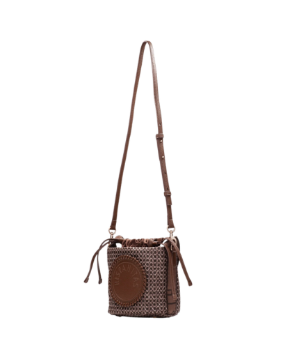 - Кръгъл кожен елемент с релефно лого и декоративен шев отпред
