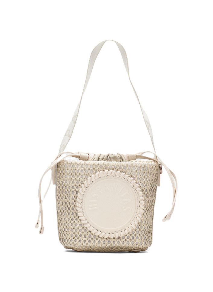 - Кръгъл кожен елемент с релефно лого и декоративен шев отпред