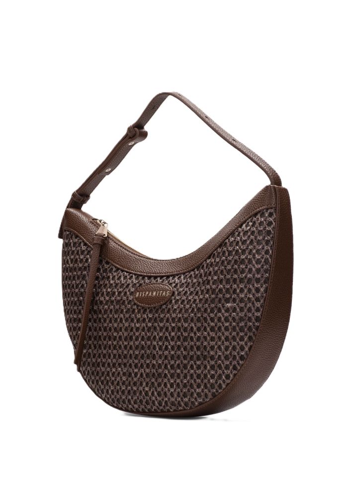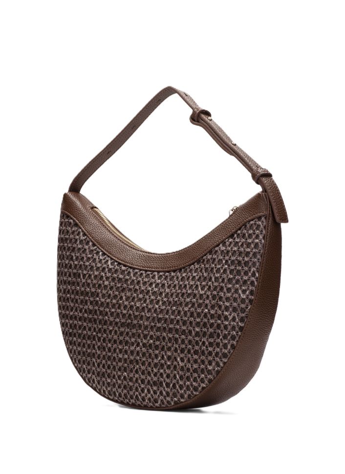- Чанта тип „хобо“, изработена от рафия и кожа
