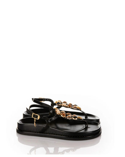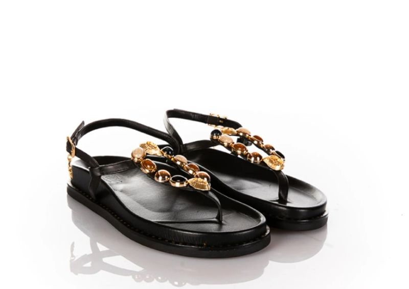 - Дамски сандали от естествена кожа, цветни камъни и метални елементи